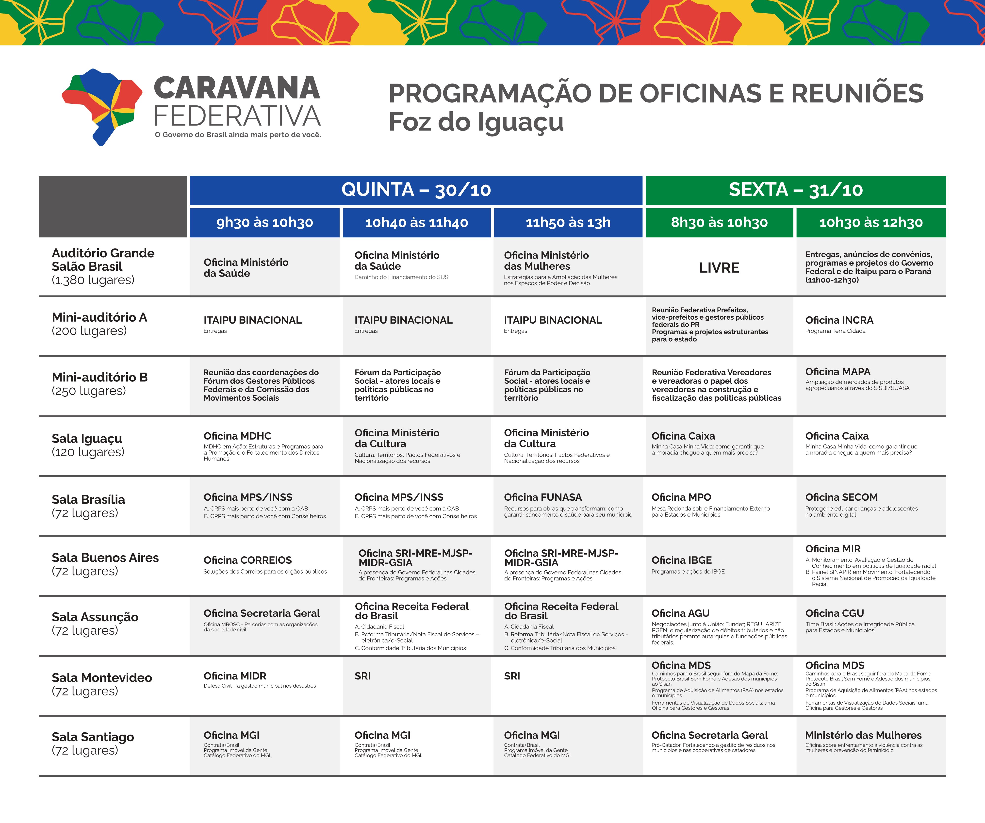 14:30 às 17:00 - Abertura oficial da Caravana Federativa: O Governo do Brasil ainda mais perto de você